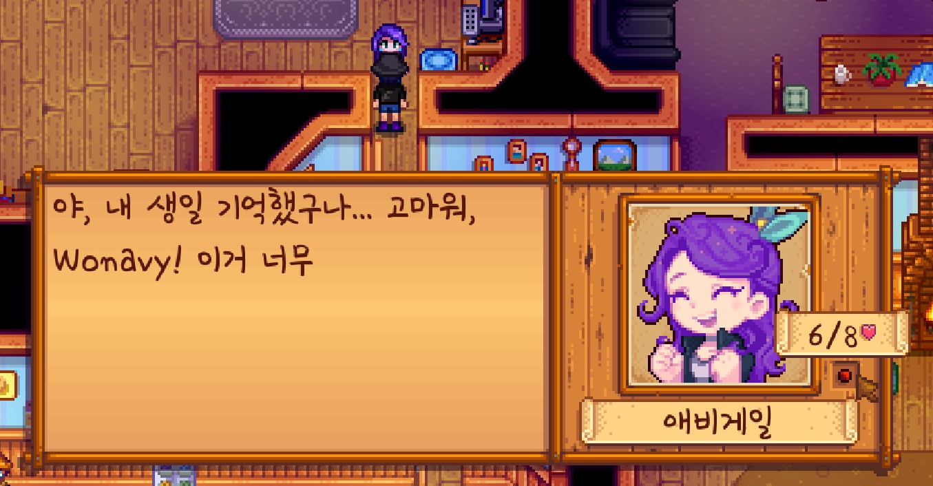 오늘은 애비게일이라 생일선물을 챙겨줬고