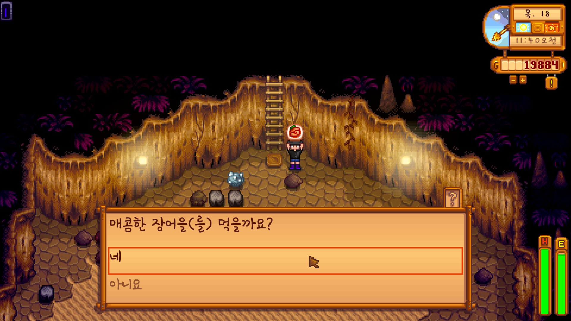 오늘도 운세가 좋아서 해골동굴에 방문해서 '매콤한 장어'까지 꺼내 먹었는데요.