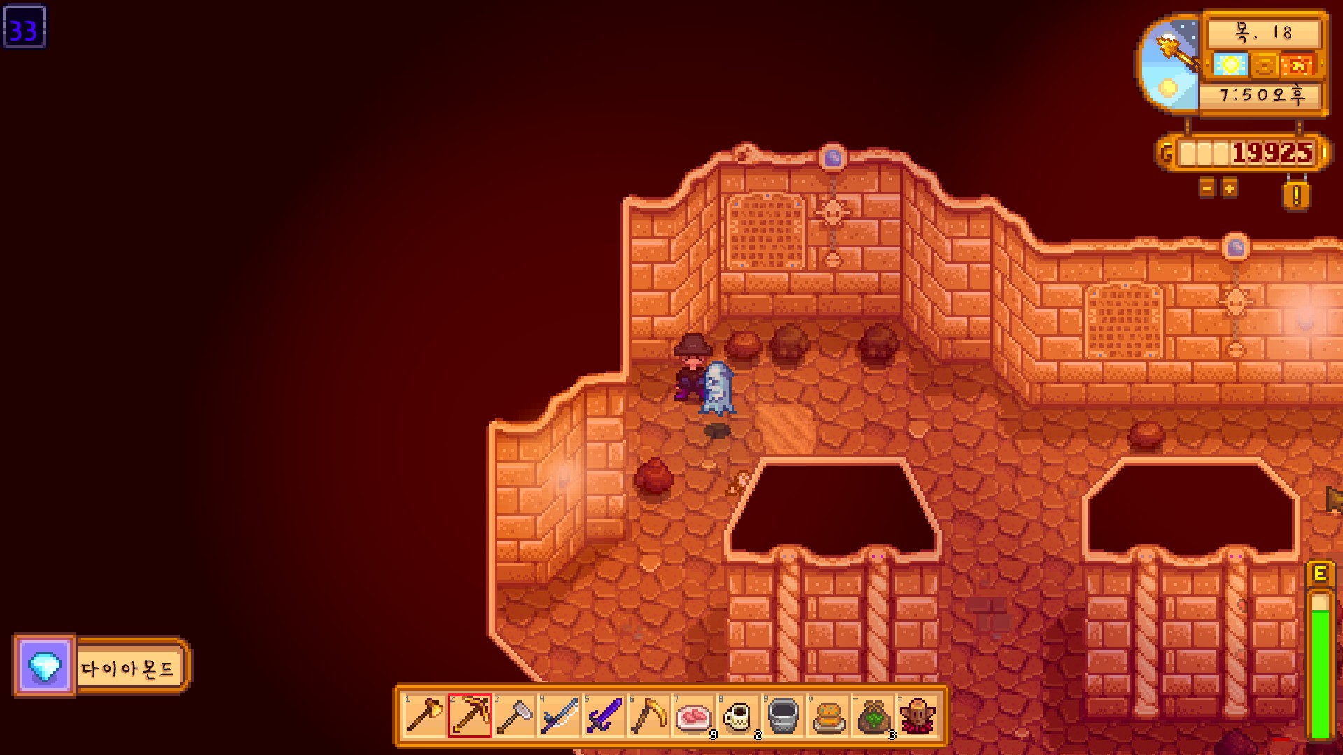 오늘은 운세가 좋아서 바로 해골동굴로 가서 광물을 이것저것 얻었는데요.