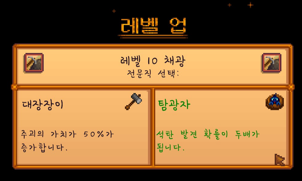 드디어 채광 10레벨에 도달했는데요. 일단은 '탐광자'를 찍기는 했는데 나중에 스킬을 돈주고 바꾸지 않을까 싶습니다.