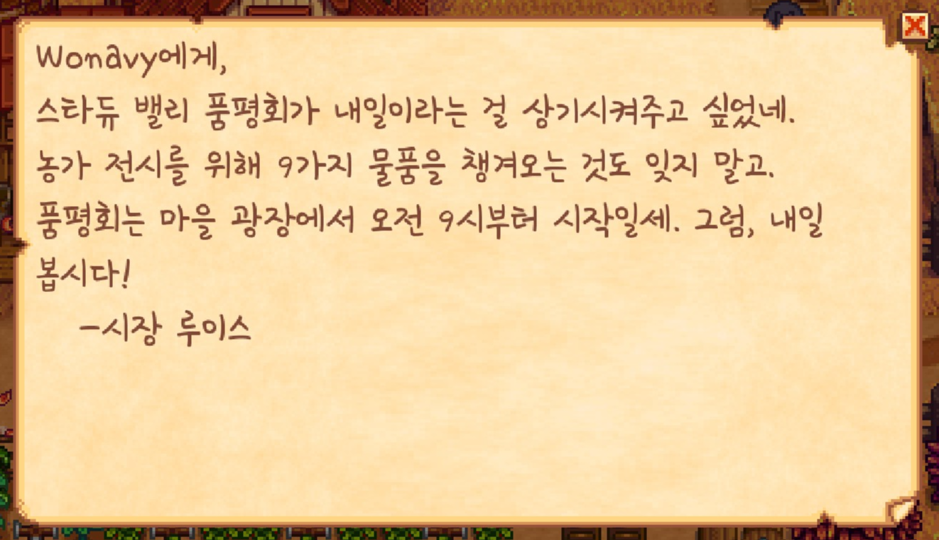 오늘은 스타듀 밸리 품평회가 있는 날입니다.