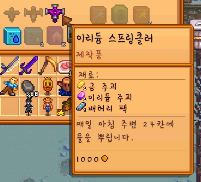 그리고 재료도 어느정도 모아서 드디어 '이리듐 스프링클러'도 대량으로 만들 수 있게 되었는데요.