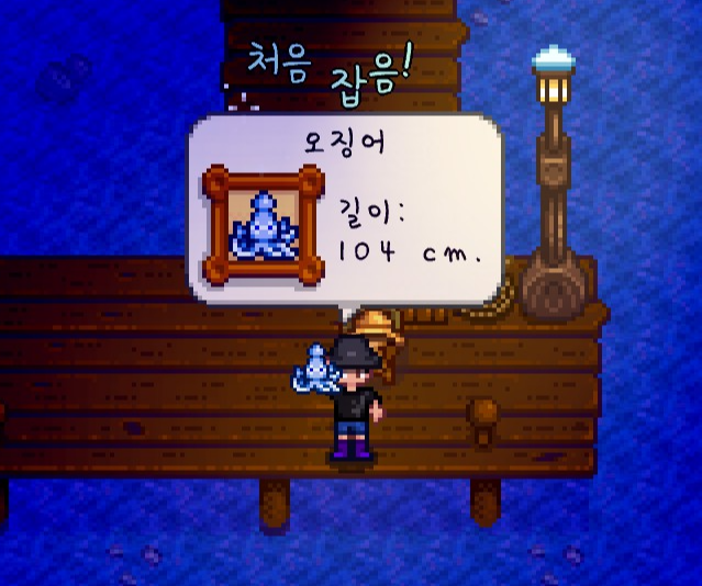 남은 시간에는 낚시를 하면서 비밀 쪽지도 얻고, 오징어도 잡아줬습니다.