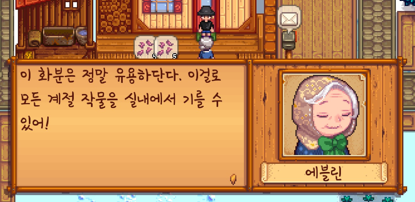 에블린 할머니가 찾아와서 화분을 하나 받을 수 있었는데요.