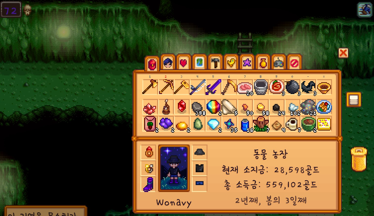 어떻게든 더 나아가보려고 했으나 몬스터 구역이 나오는 바람에 72층에서 포기하고 농장으로 돌아갔습니다.