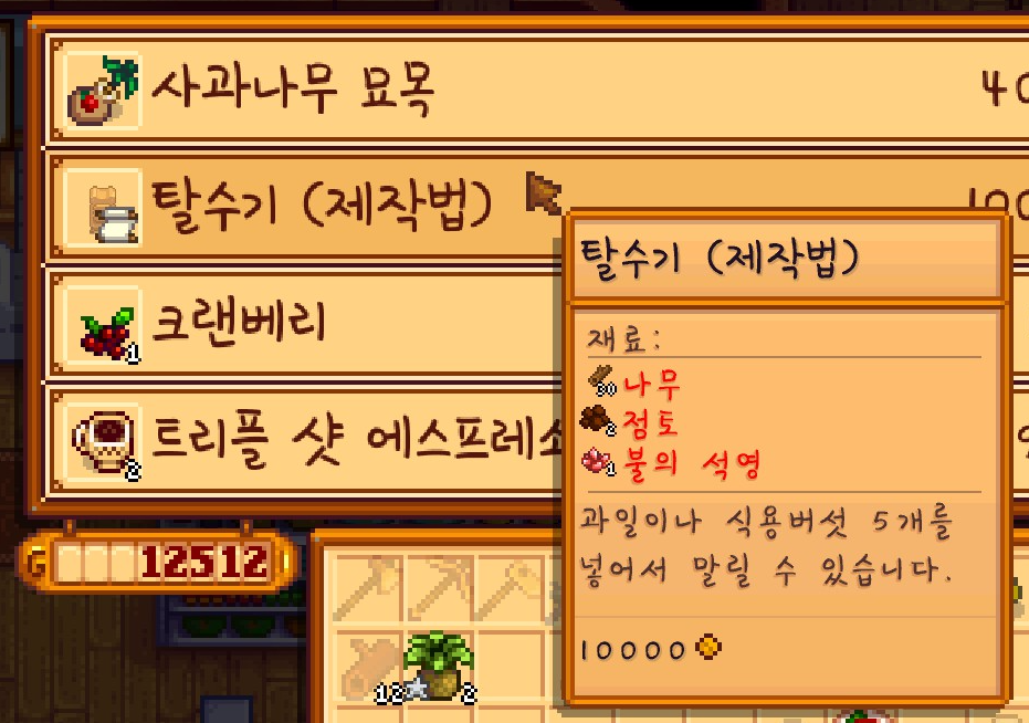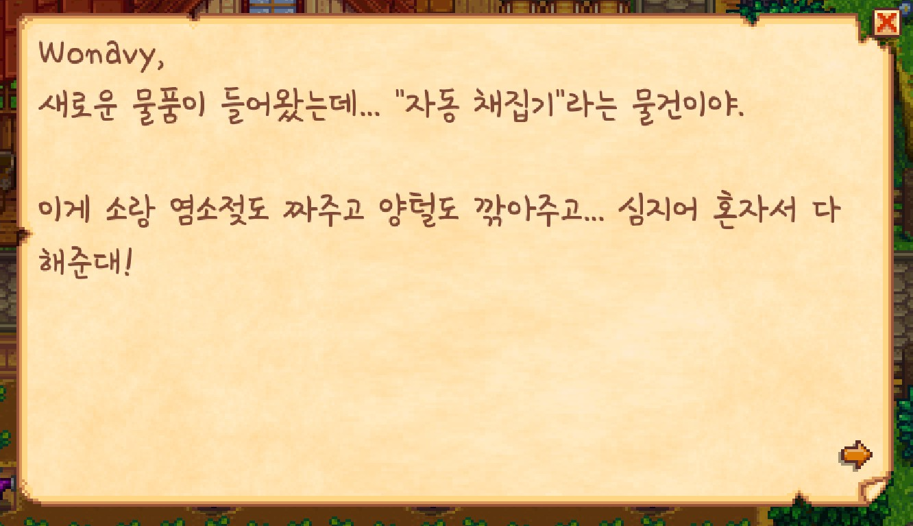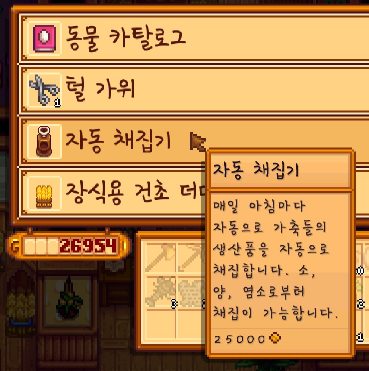 농사 10레벨을 달성해서 그런 건지 몰라도 이제 '자동 채집기'를 돈 주고 살 수 있게 되었습니다.