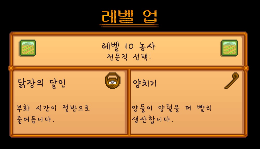 드디어 농사 10레벨을 달성할 수 있었습니다. 기술은 추후에 바꿀 예정이라 일단 일단 아무거나 골랐습니다.