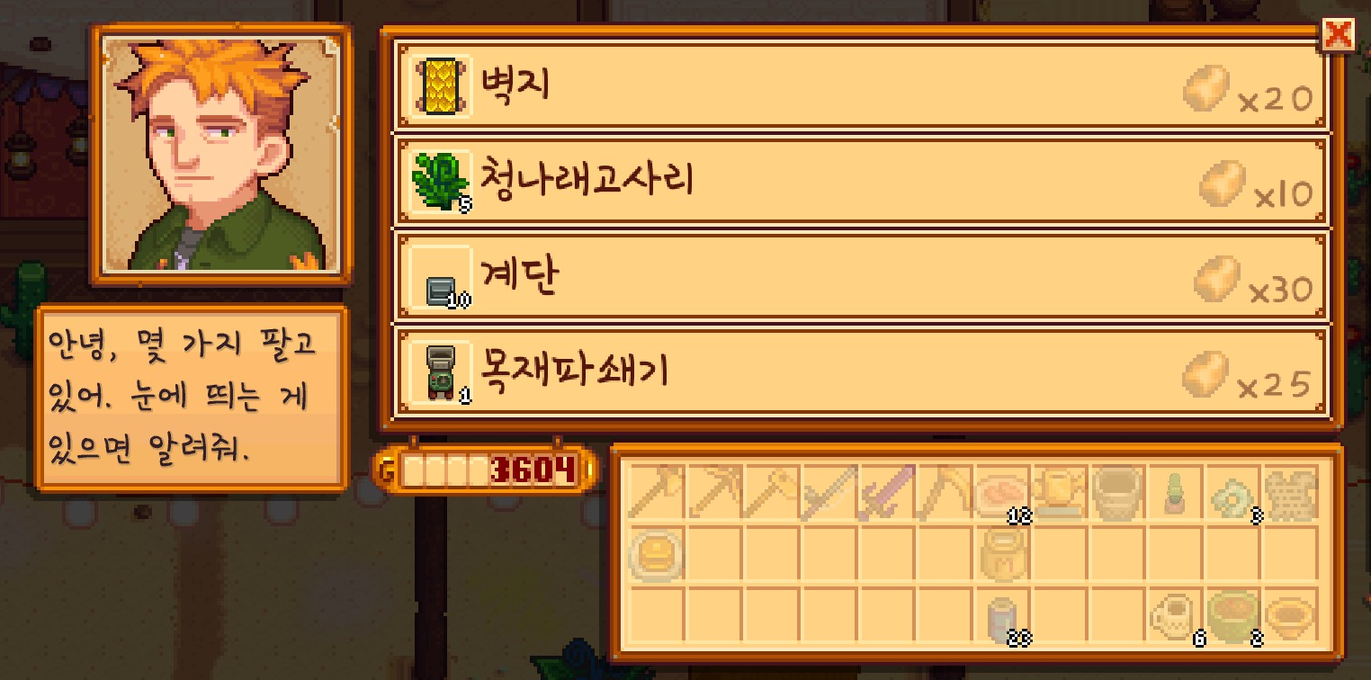 그리고 매일 마을 NPC 2명씩 가게를 운영하게 되는데, 각 NPC마다 판매하는 물품이 또 다른 듯하더라고요?