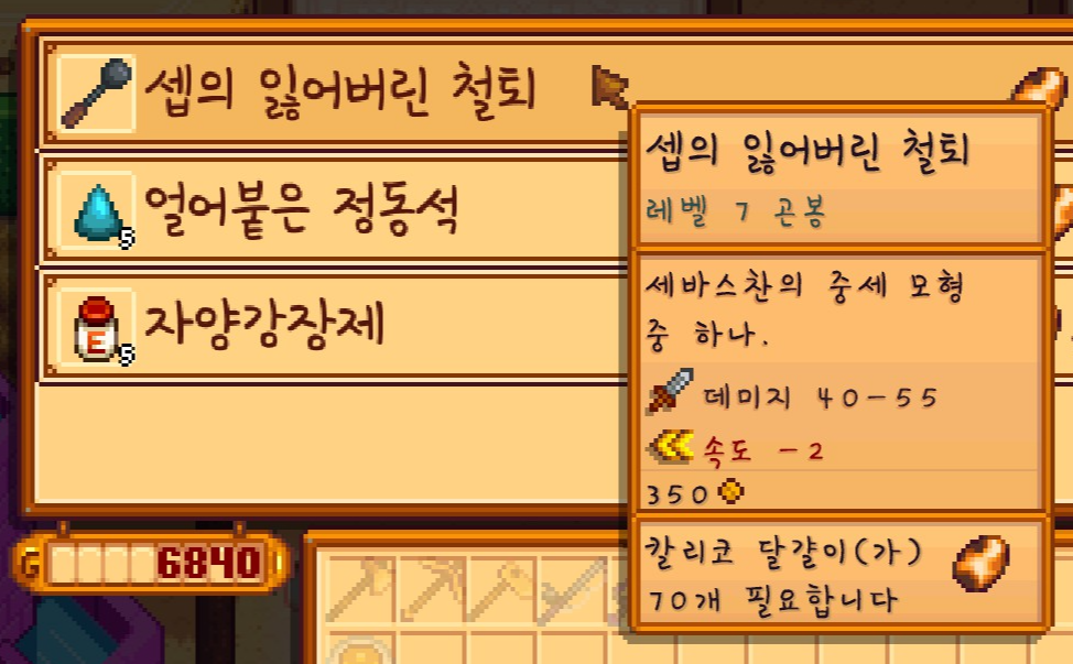 저번에 받았던 콜리플라워 100개 넣는 의뢰 보상으로 8750골드를 받게 되었고