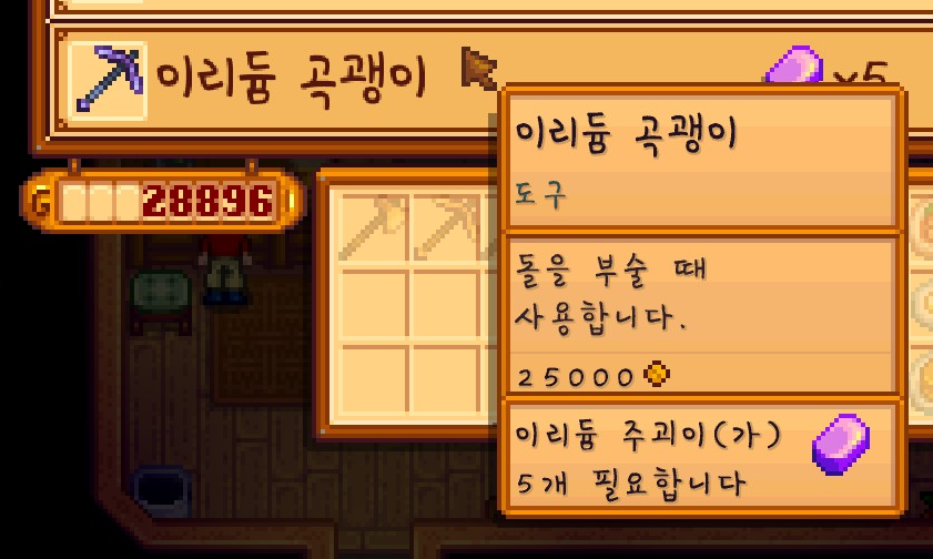 지금까지 이런저런 일로 치여서 금 도구로 계속 살고 있었는데요. 이제 이리듐 주괴가 어느 정도 모여서 다시 업그레이드를 해보려고 합니다.