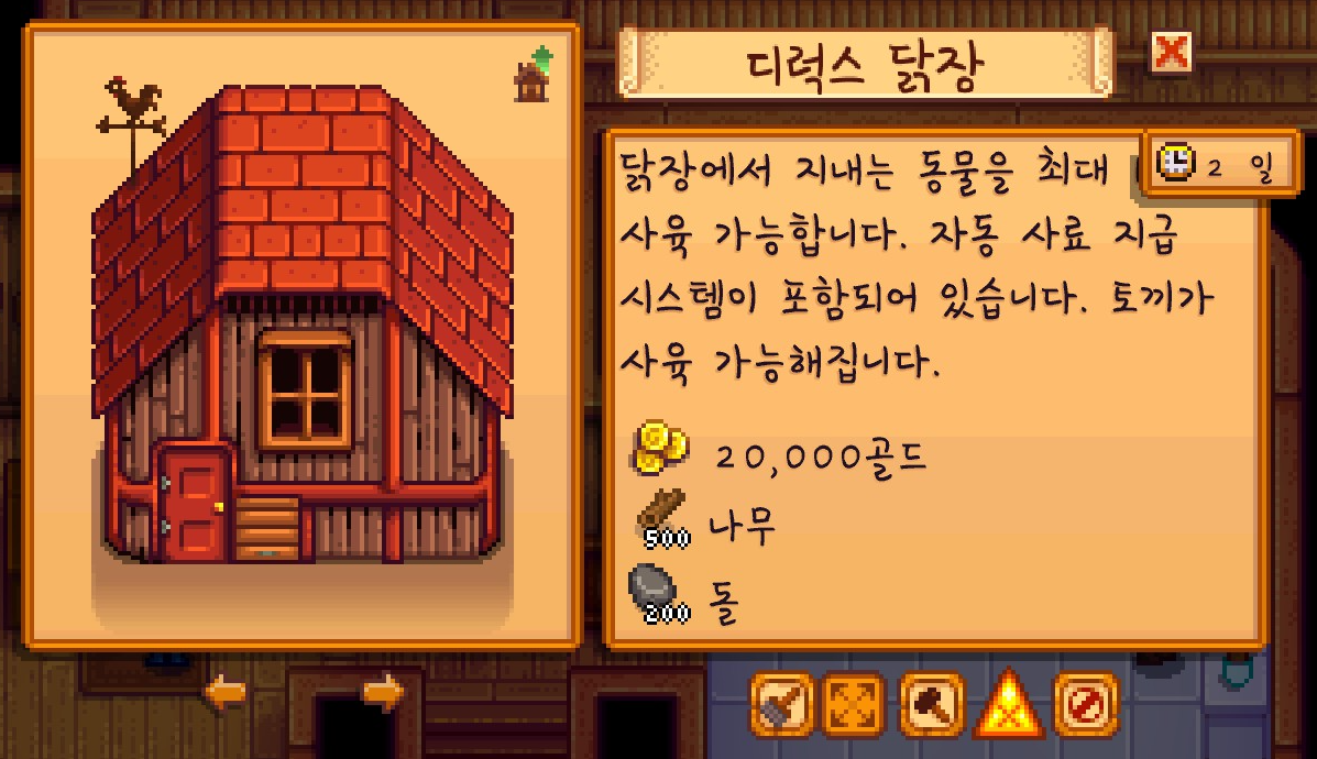 모은 재료로 디럭스 닭장 업그레이드 의뢰를 맡겼고