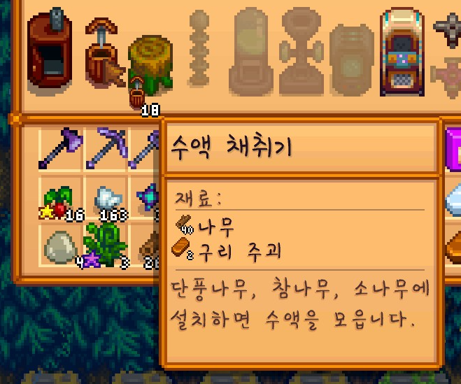농장 앞에 심어놨던 가로수들이 다 자라서 수액도 같이 얻을 겸 수액 채취기를 18개나 만들어줬고