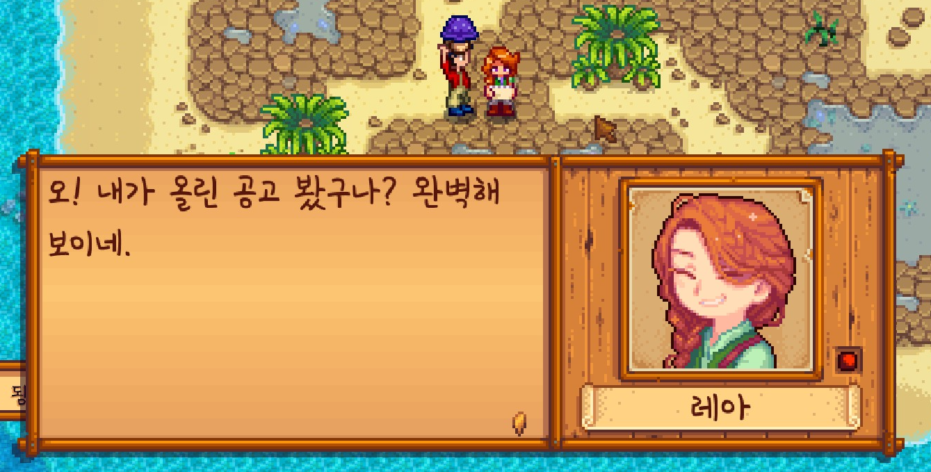 레아가 보라색 버섯을 원한다는 공고가 있어서 바로 가져다줬습니다.