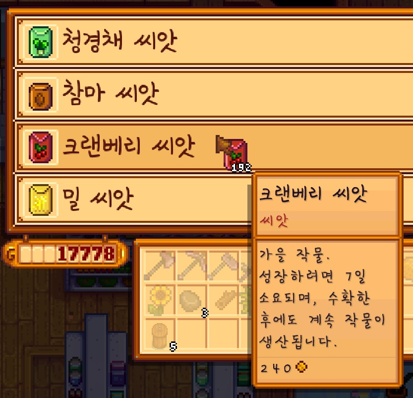심었던 크랜베리가 다 자라서 수확을 해줬습니다. 이제 이리듐 낫이 있어서 그런지 농사는 한층 편해지기는 했습니다.