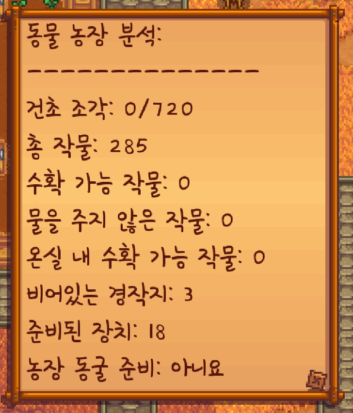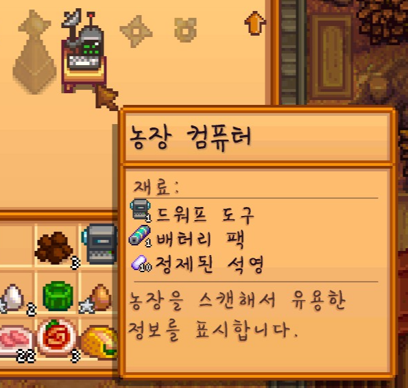 컴퓨터가 농장에 대한 많은 정보들을 알려주는데요. 만약 수확하지 않았거나 물을 주지 않았다면 컴퓨터를 통해서 알 수 있으니 꽤나 유용하게 잘 써먹을 것 같네요.