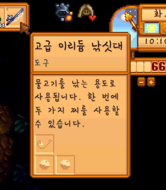 이번에는 '낚시'를 선택을 해봤는데요. 이리듐 낚싯대를 넘어 '고급 이리듐 낚싯대'를 얻을 수 있었습니다.