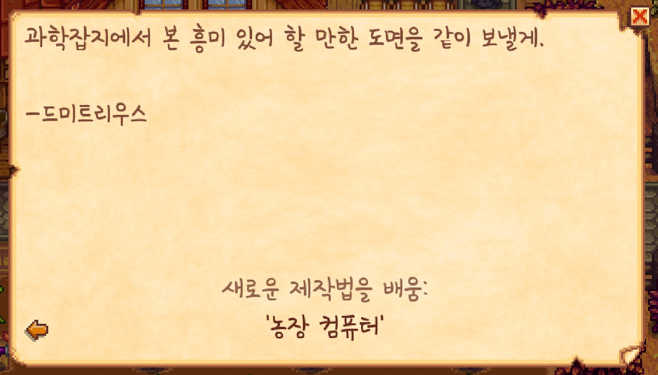 바다 물고기 20마리 잡은 퀘스트를 완료해서 '농장 컴퓨터'의 제작법을 배우게 되었는데요.