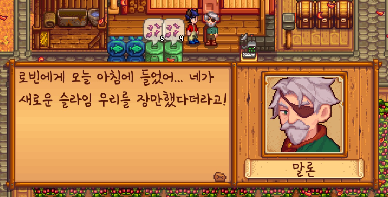 슬라임 알 하나를 받을 수 있었는데요. 슬라임 장을 완성해서 말론이 찾아온 듯 했습니다.
