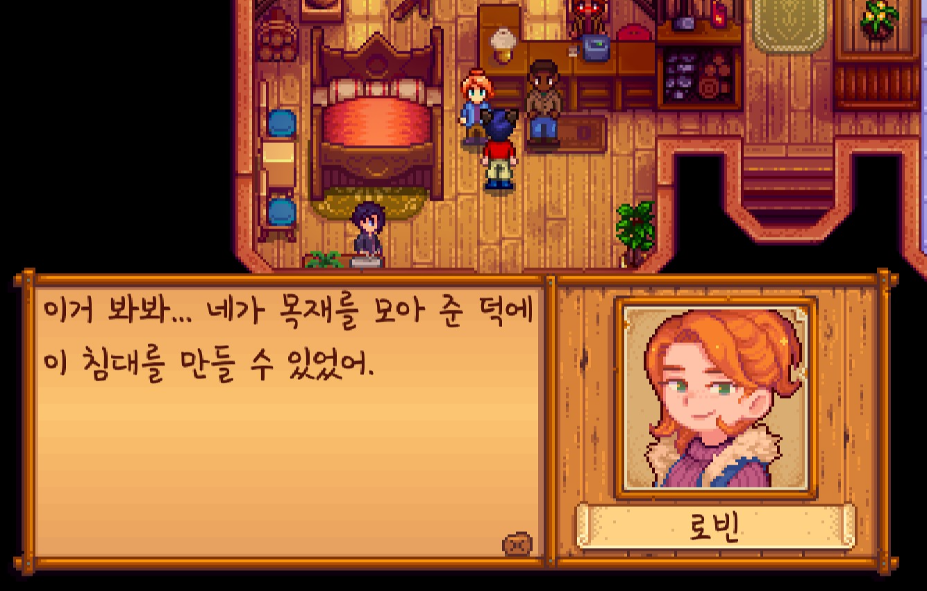 저번에 단단한 나무 80개 전달하는 의뢰 이후 이벤트를 보니 새로운 디자인의 침대를 만들었다는 내용인데요. 이 디자인을 추후에 돈을 주고 살 수 있는 그런 느낌이었습니다.