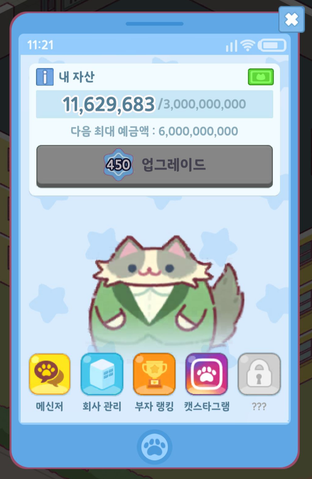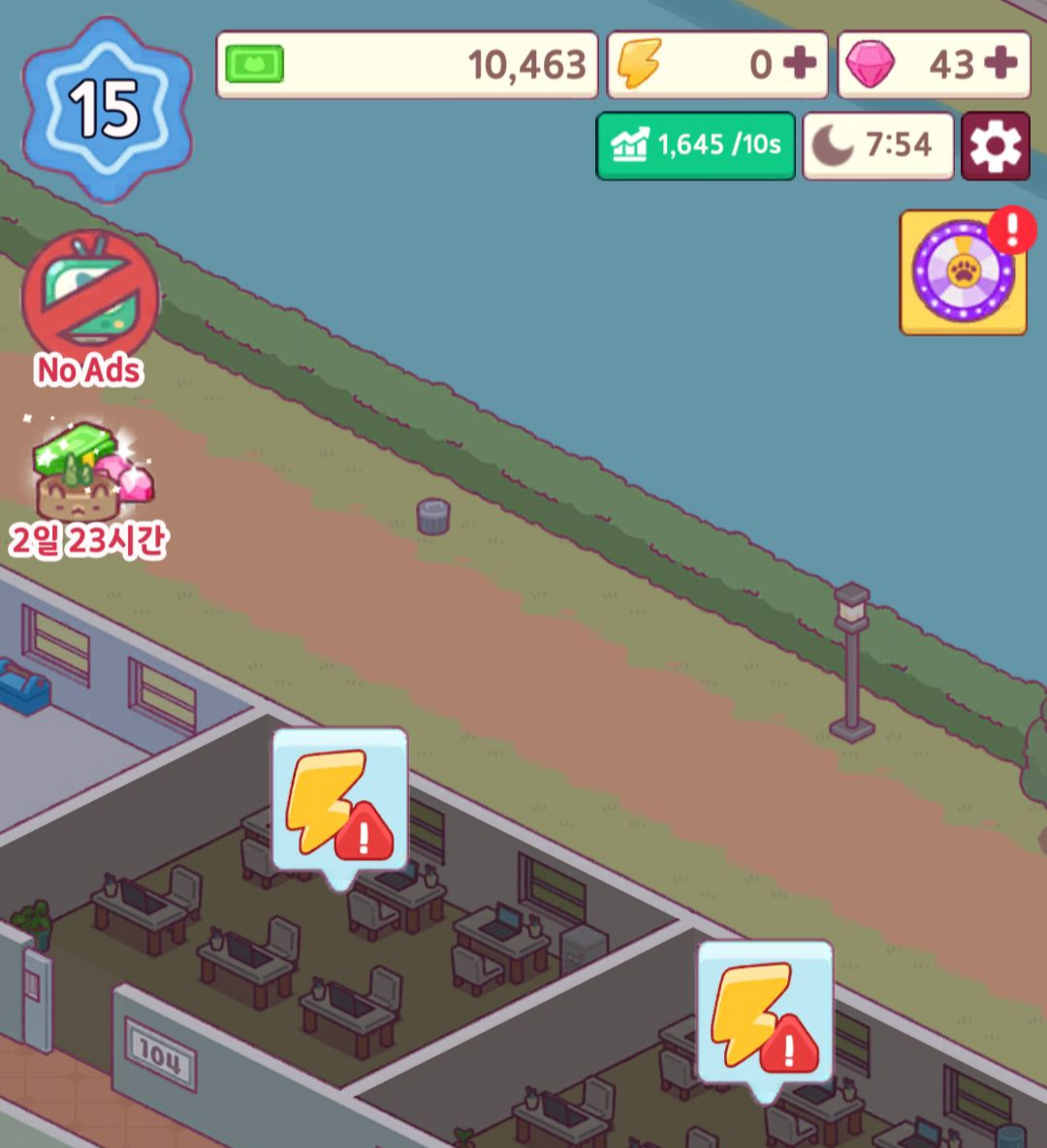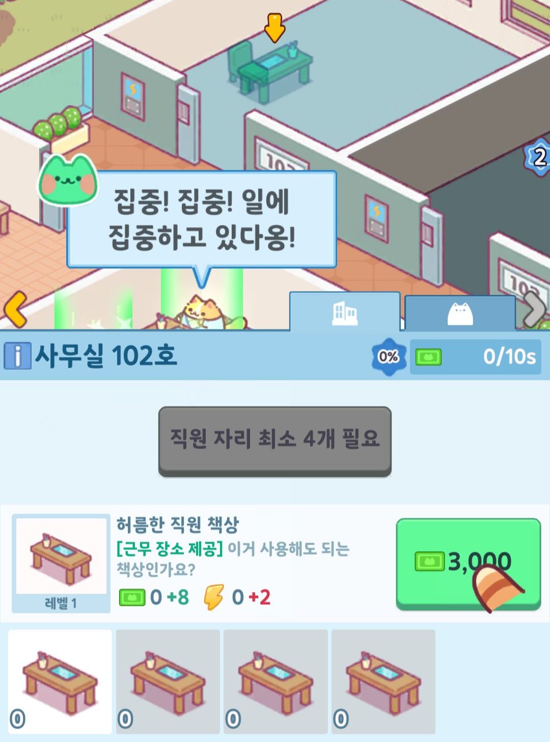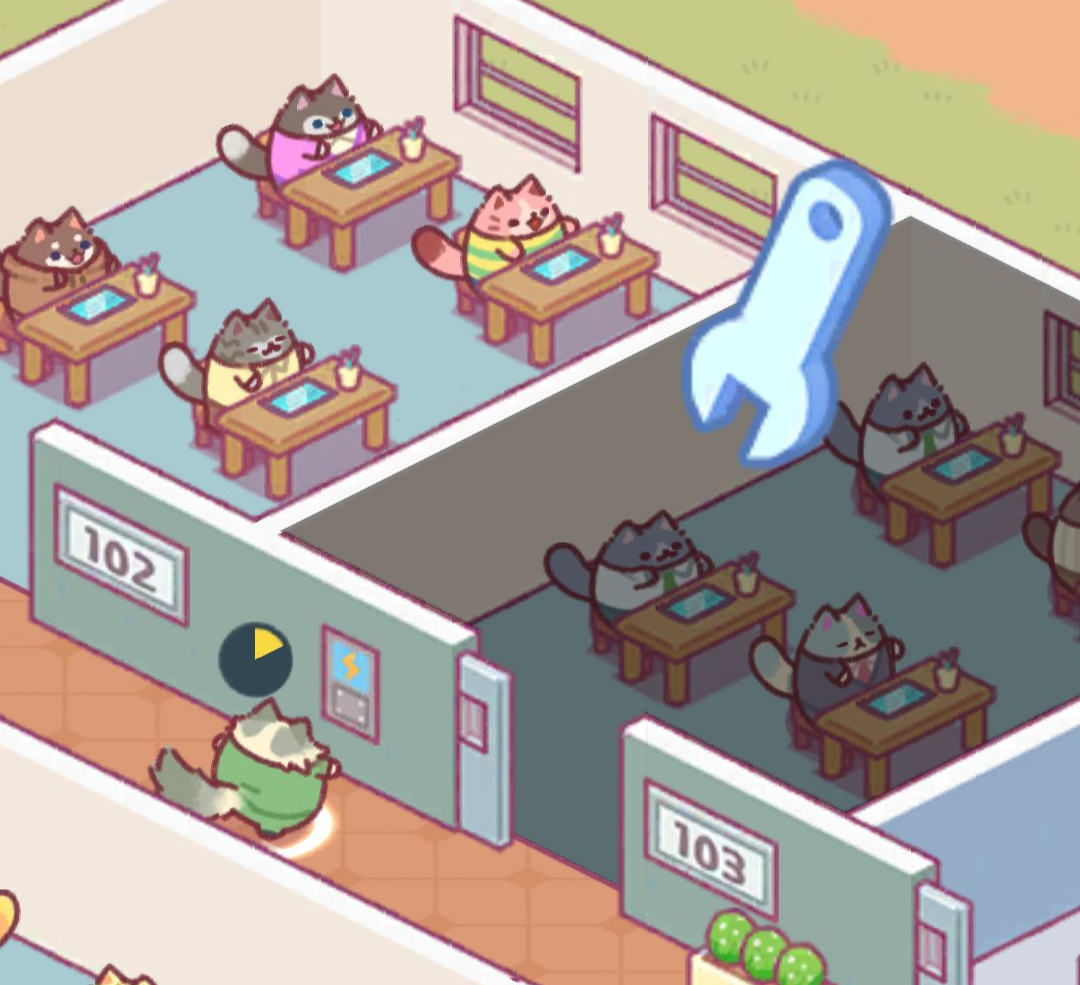건물주가 되어 각종 고양이들이 사무실을 운영해 돈을 버는 방치형 타이쿤 게임입니다.