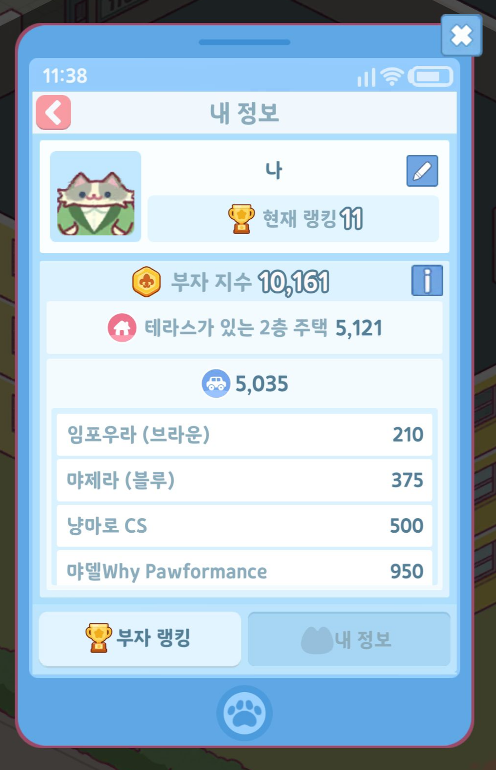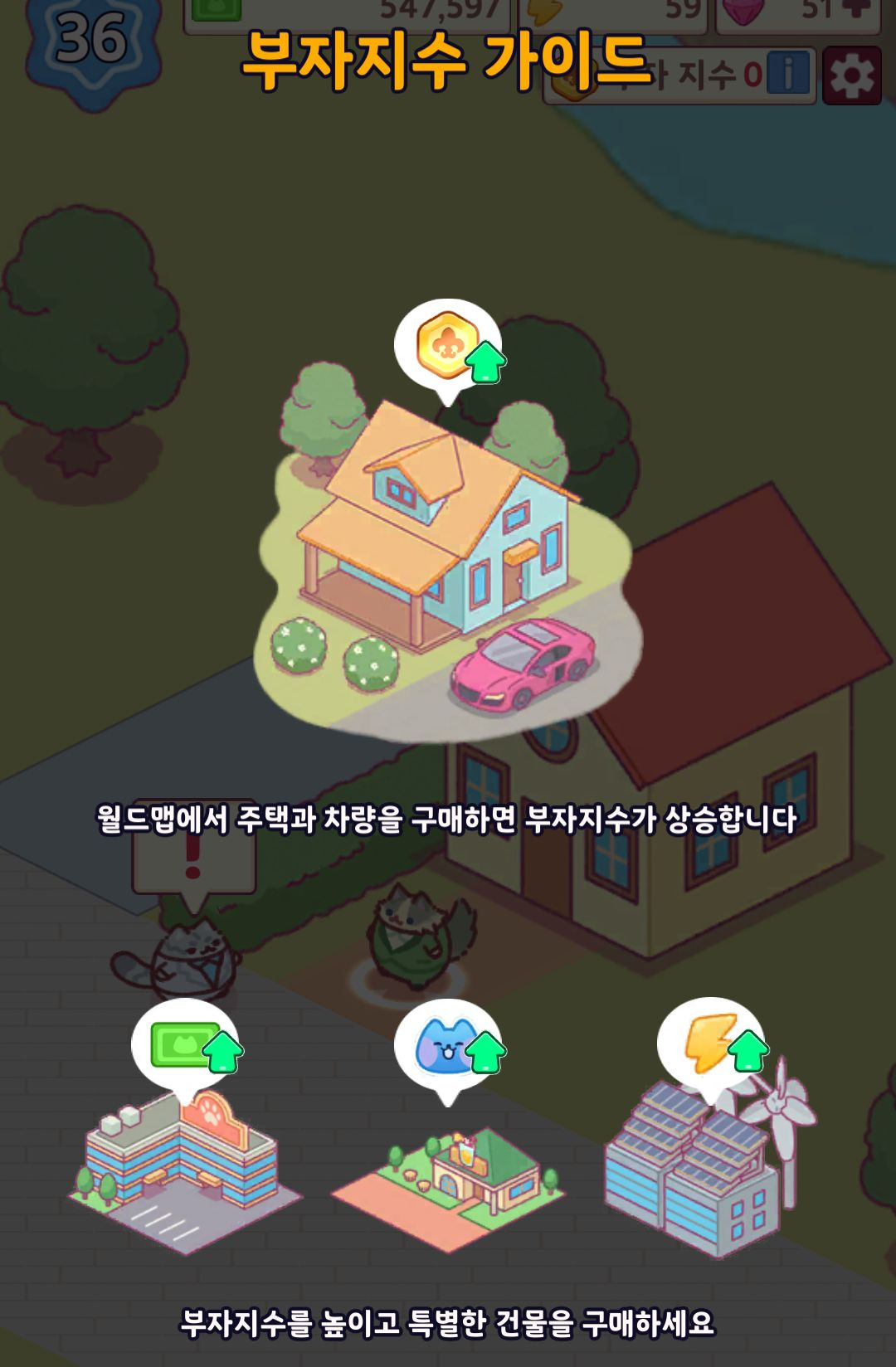 부자수치를 올리기 위해서는 좋은 집과 차를 구매하면 올릴 수 있습니다.