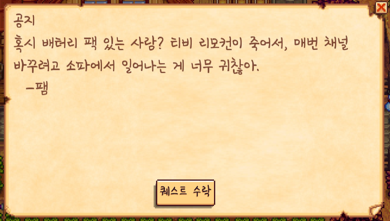 편지가 와서 열어보니 팸이 배터리 팩을 하나 구해달라고 하는데요.