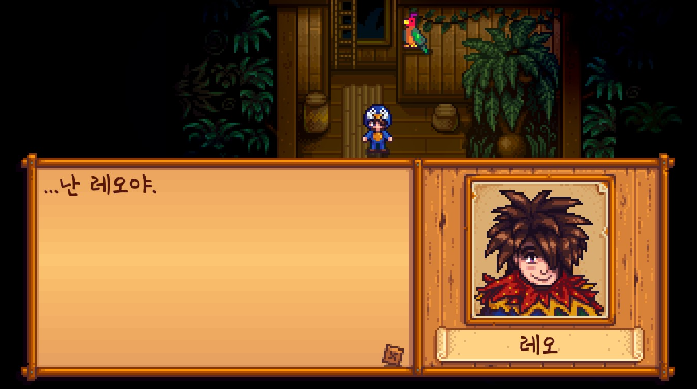 그리고 앵무새와 같이 있었던 NPC의 이름이 '레오'라는 사실을 알게 되었고, 서로 대화도 나누게 되었는데요.