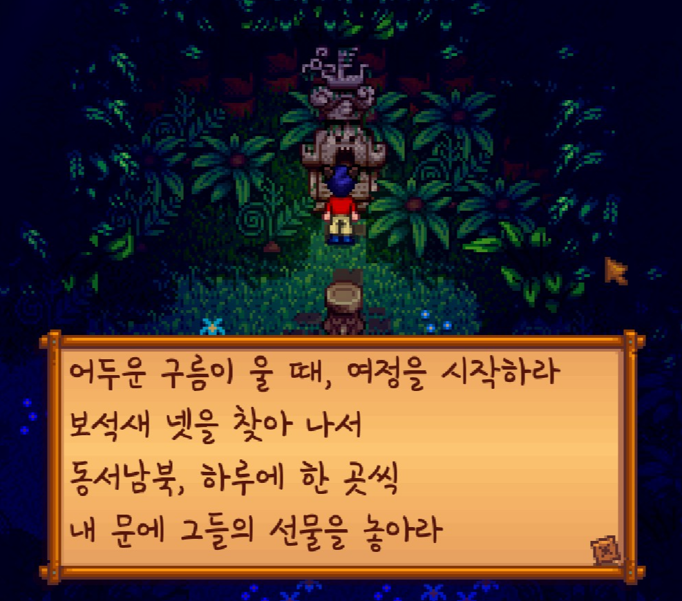 동쪽 숲 사이에 이런 글귀를 찾을 수 있었는데요. 뭔지는 모르겠지만 일단 보석새를 찾아봐야 할 것 같네요.
