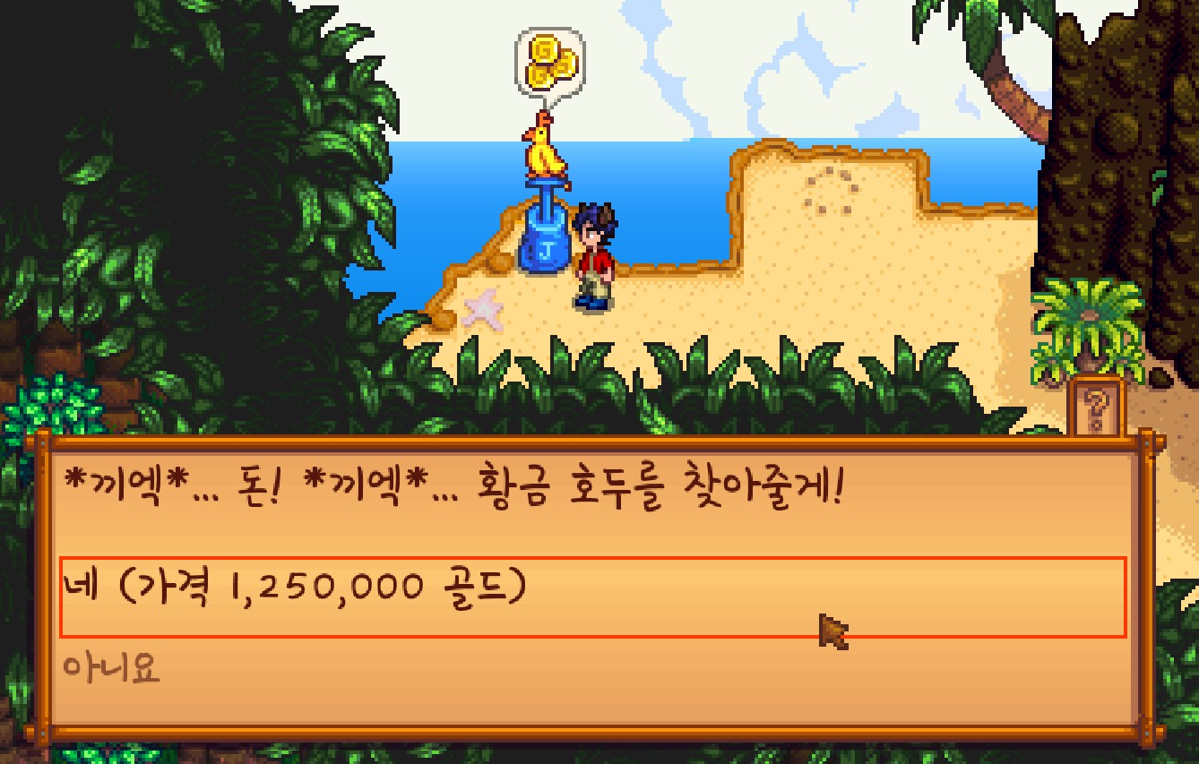 구석에 미니게임을 하는 듯한 구간이 있어서 시간이 좀 걸렸지만 아무튼 리듬게임을 성공하고 황금호두를 받았고...