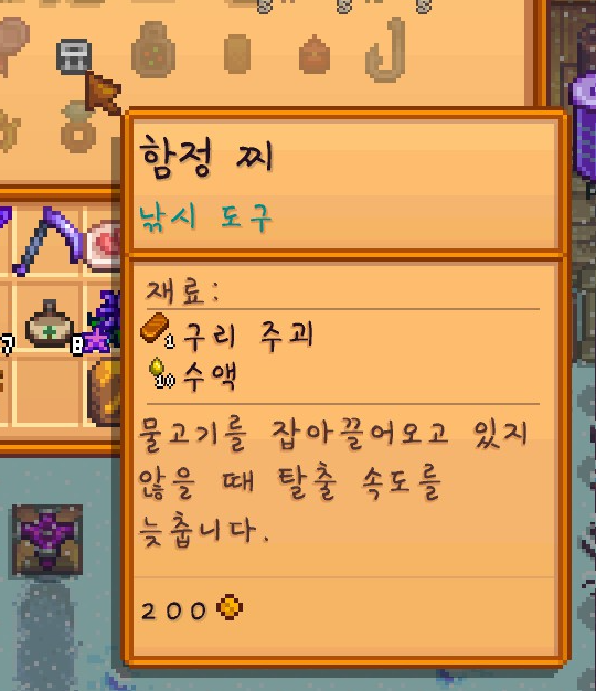 그리고 재료를 챙겨서 함정 찌와 낚시 레벨을 올려주는 음식을 챙겼습니다.