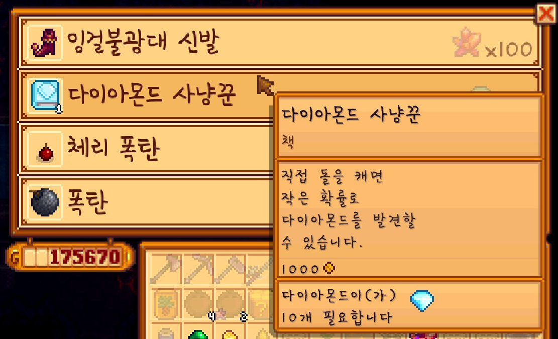 그리고 상위 방어구와 다이아몬드 발견 패시브 책도 판매를 하고 있었는데요. 지금 당장 구매할 수 없어서 나중에 한번 더 찾아와야 할 것 같네요.