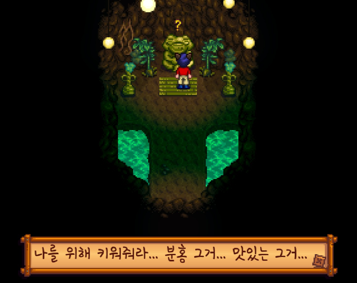 그리고 어쩌다가 개구리 석상을 찾게 되었는데요. 분홍 그거를 키워달라고 하는데...
