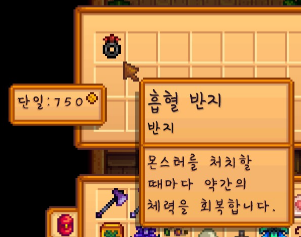 일단 박쥐 마리 수를 다 채워서 보상을 받아보니 흡혈 반지를 얻게 되었는데요. 언젠가 쓸 수도 있으니 일단은 놔두려고 합니다.