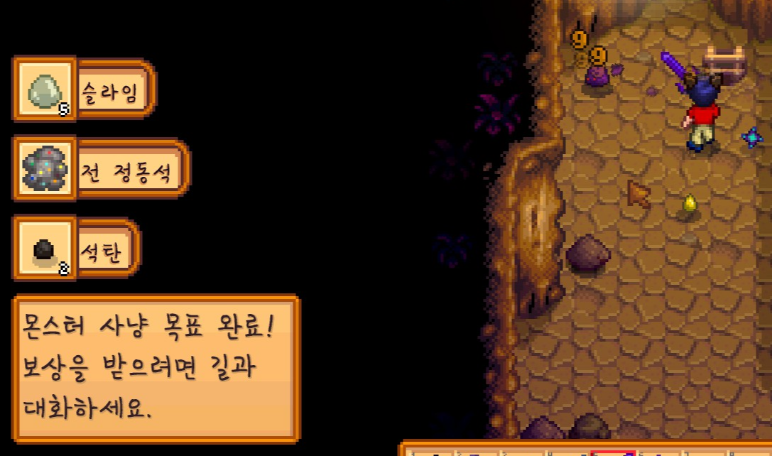 신나게 슬라임을 잡는 도중 사냥 목표가 완료되었다고 하는데요.