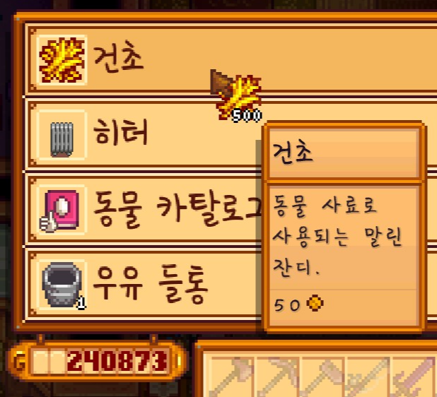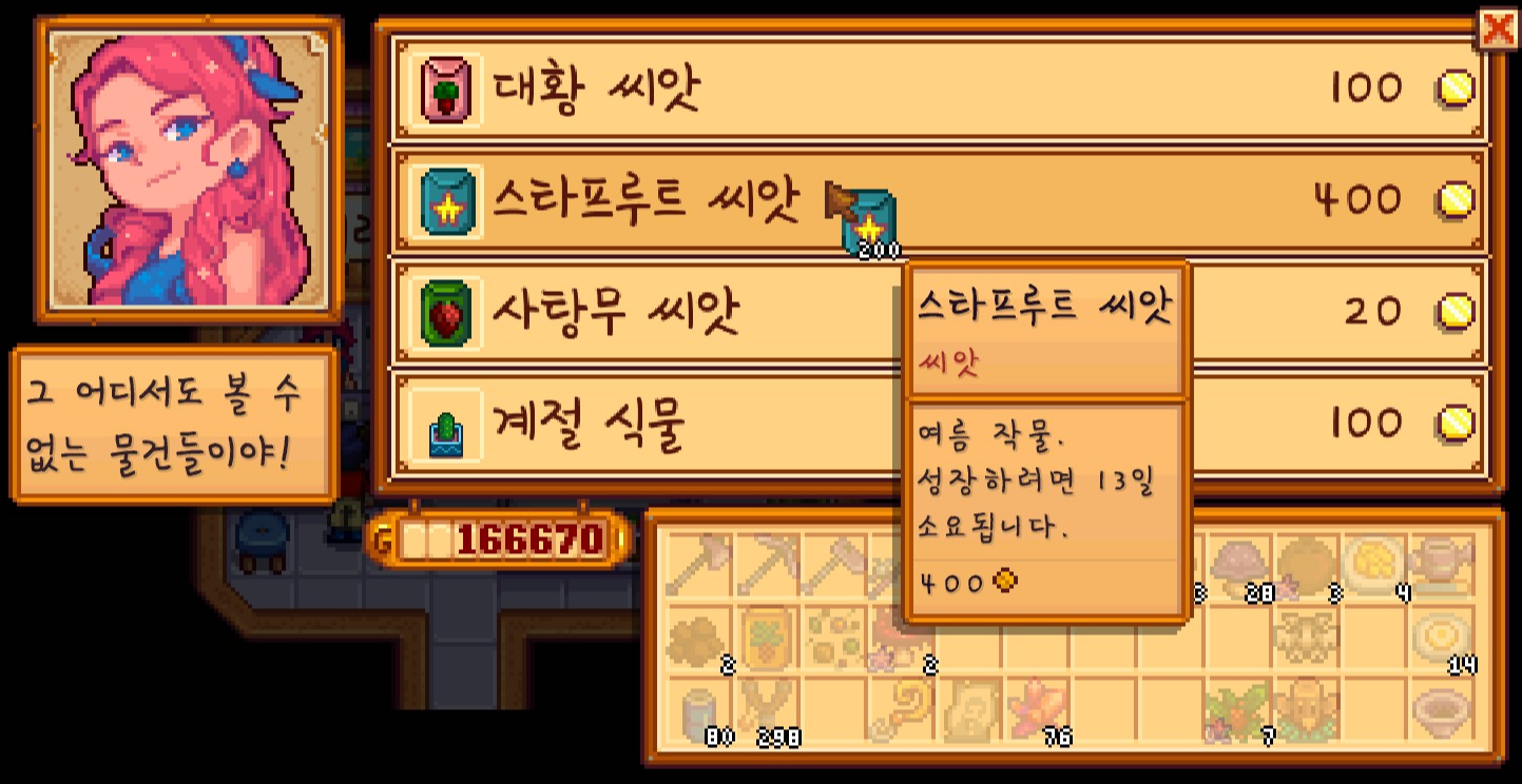 이제 진저섬에도 작물을 심을 수 있게 되어서 스타후르츠 씨앗을 구매했는데요. 진저섬은 온실 같은 기후이기 때문에 그냥 비싼 씨앗으로 구매를 딱 해줬습니다.
