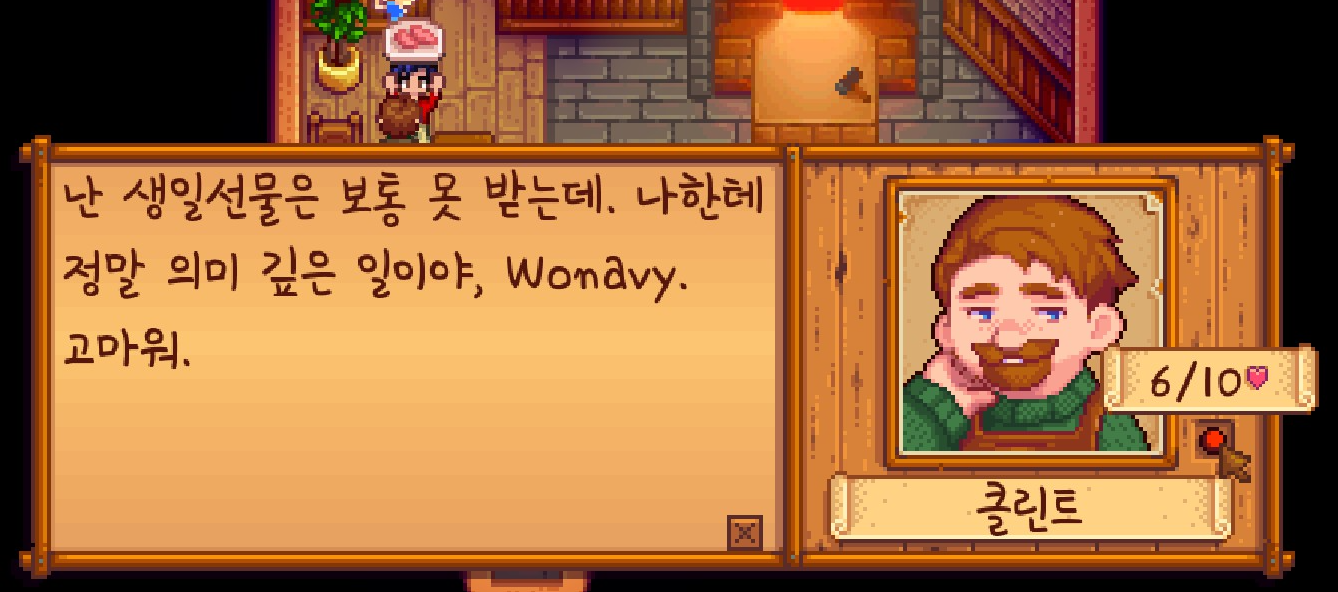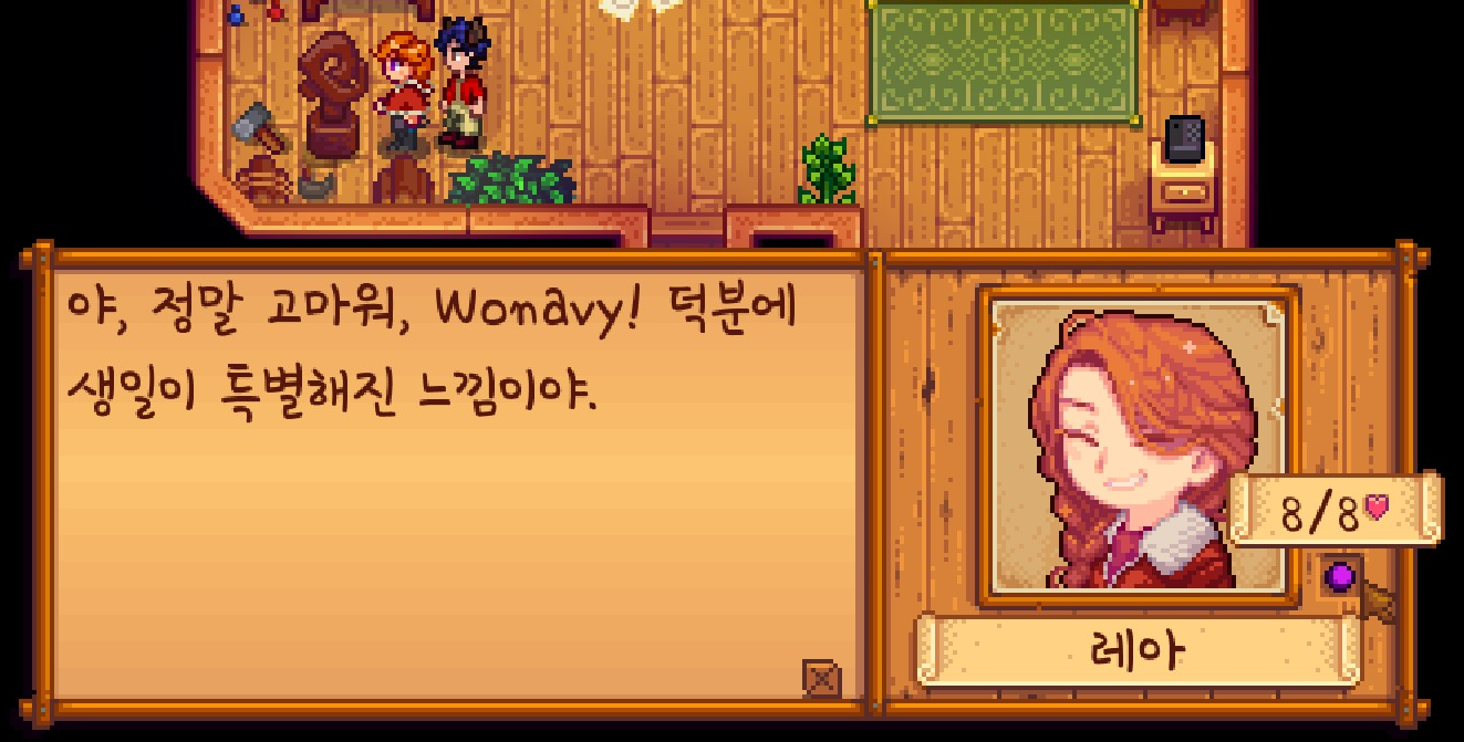 사실 오늘은 드워프 생일이 아닌데요. 호감도를 따로 챙기기가 귀찮아서 동굴에 방문할 때마다 유물을 선물로 주고 있습니다.
