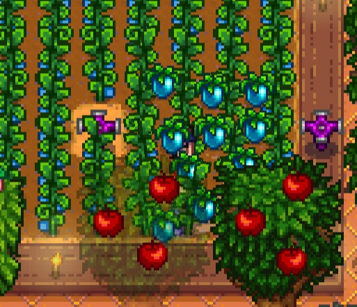 온실에 있는 고대과일 수확 타이밍이 찾아와서 이리듐 낫으로 긁어서 싹 다 수확을 해줬고...