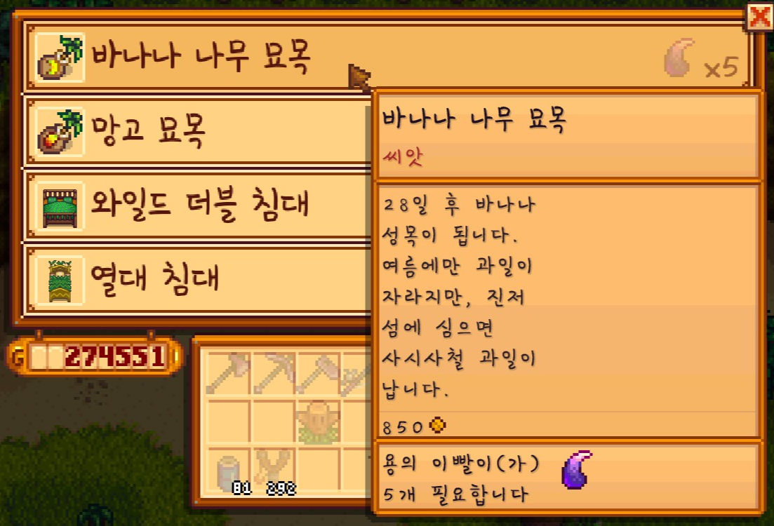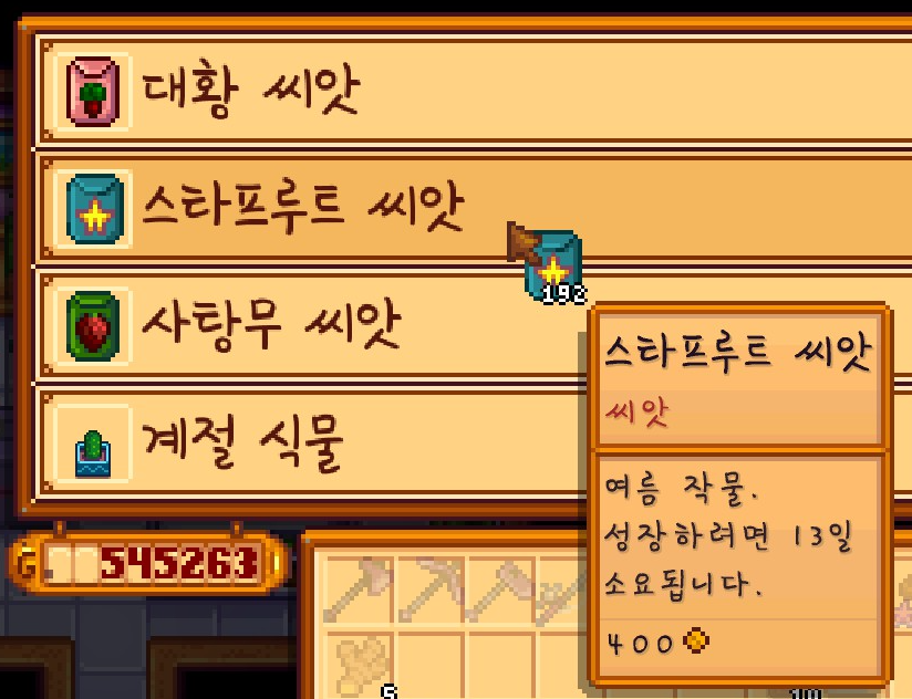 그리고 진저섬에 또 따로 심을 스타후르츠 씨앗을 대량으로 구매를 해줬는데요.