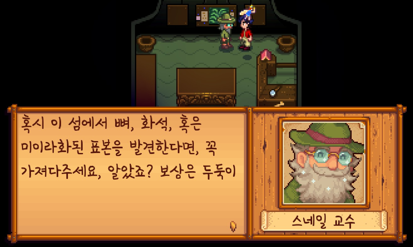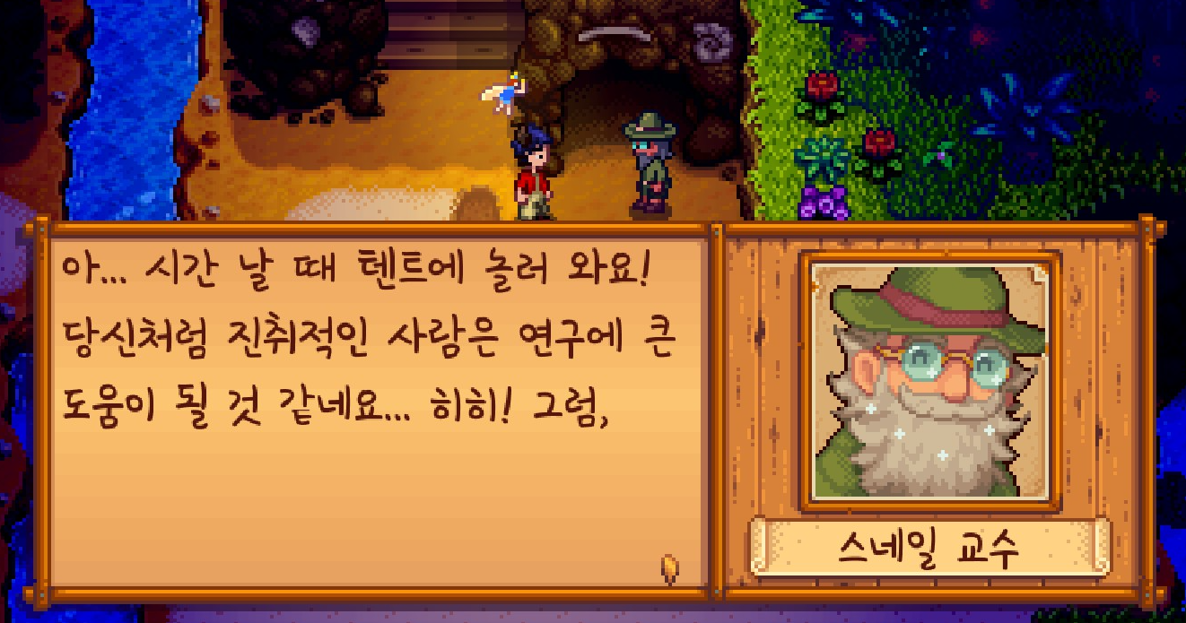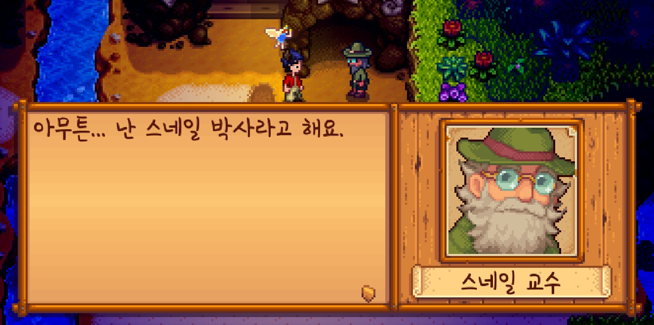 폭탄으로 돌을 파괴하니 '스네일 교수'라고 하는 새로운 NPC를 만나게 되었는데요.