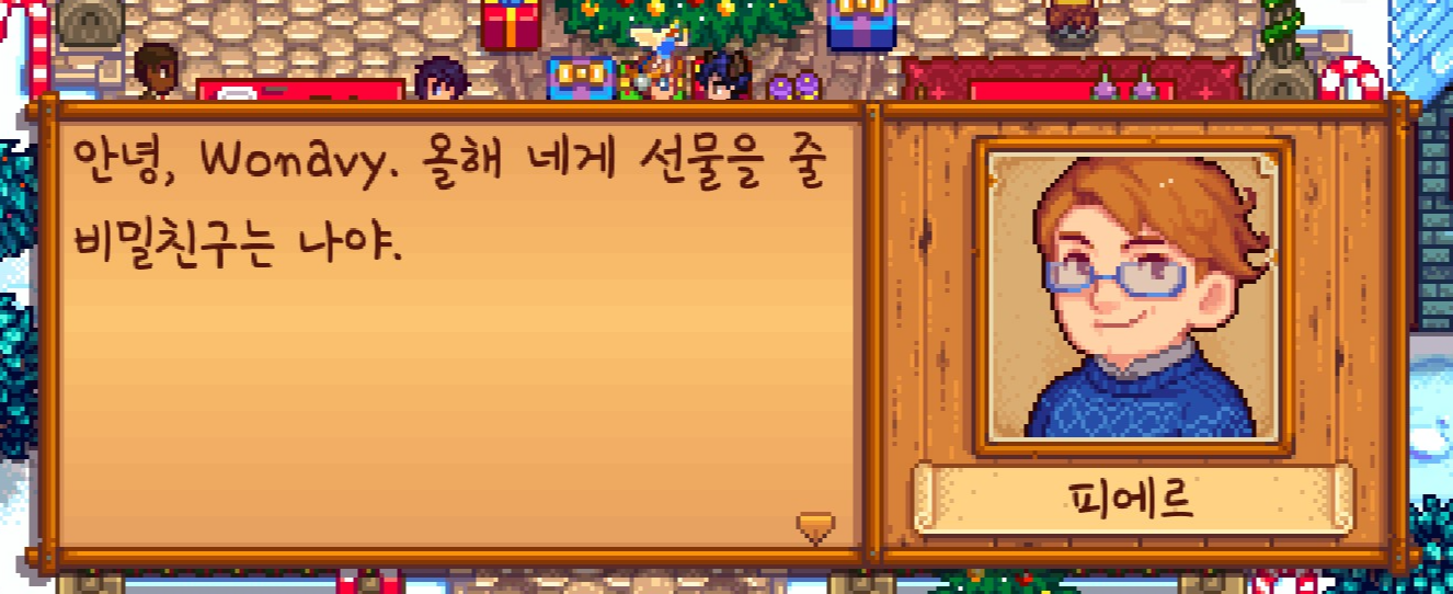 비밀친구인 로빈에게 선물을 줬는데 저에게 선물을 줄 사람은 피에르였습니다.
