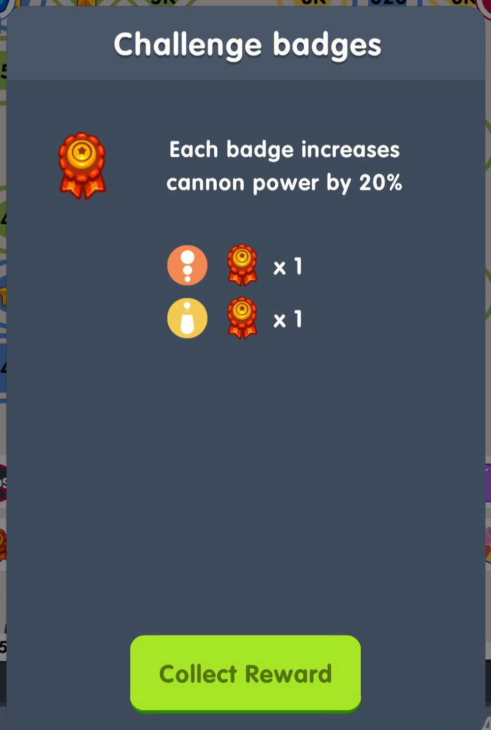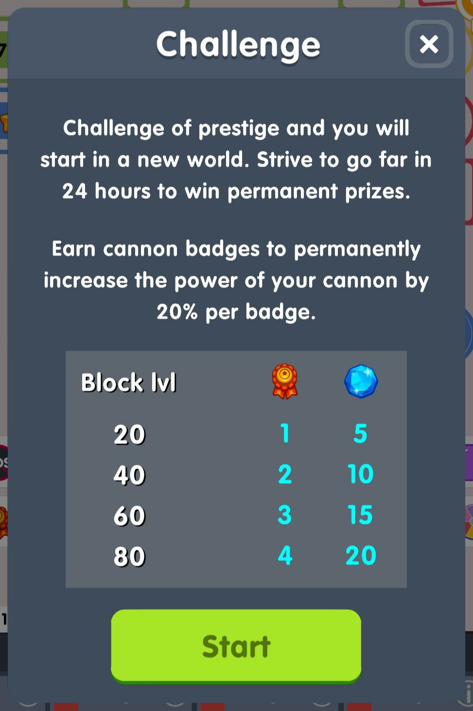 그리고 챌린지도 있는데요. 24시간 내로 블럭 레벨을 높이 찍으면 각 대포의 능력치를 올려주는 뱃지와 보석을 얻을 수 있습니다.
