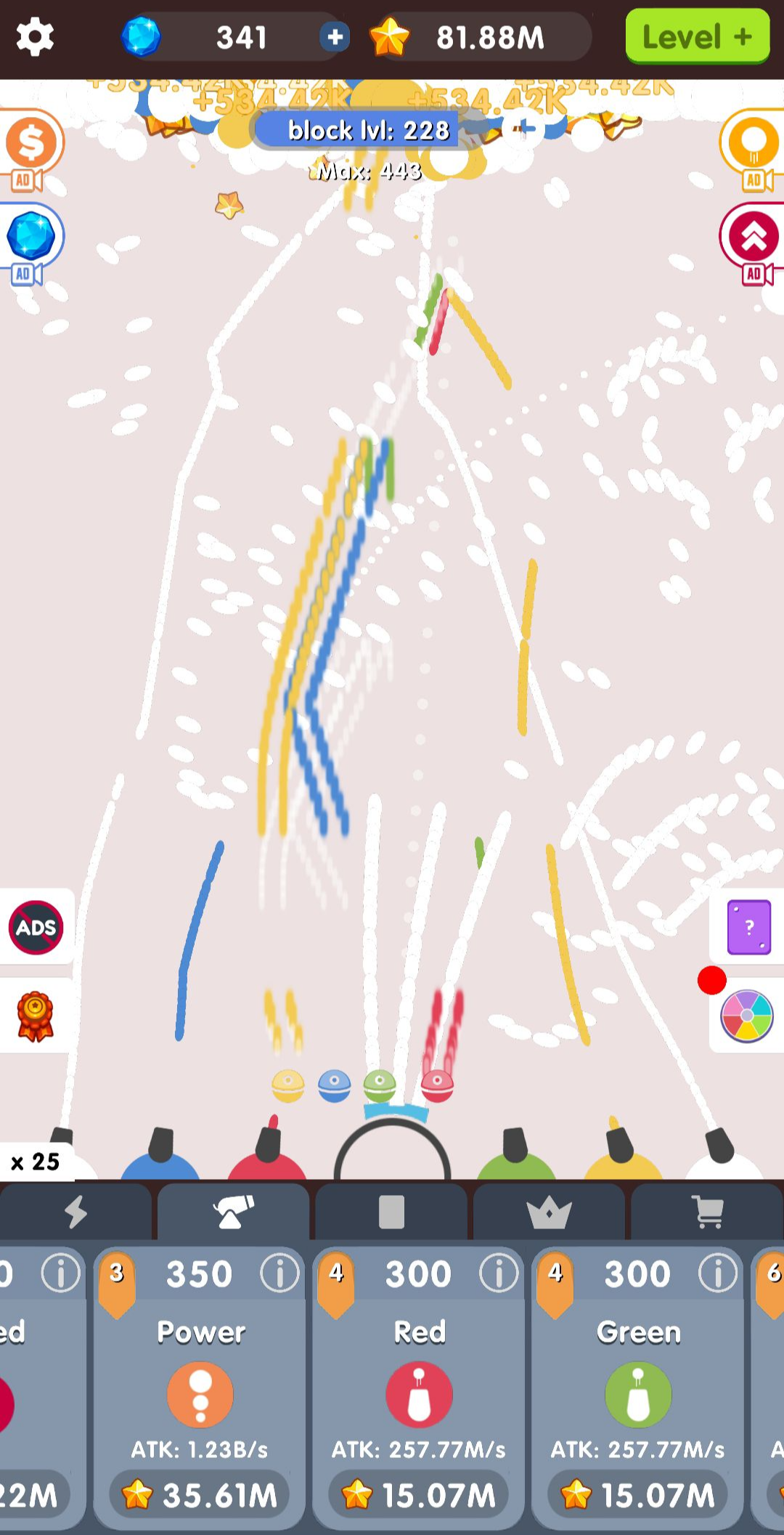 그리고 블럭을 계속 부수다보면 블럭 레벨이 올라가게 되는데요. 일정 레벨에 도달하면 퍽을 찍어서 능력치를 올릴 수 있습니다.