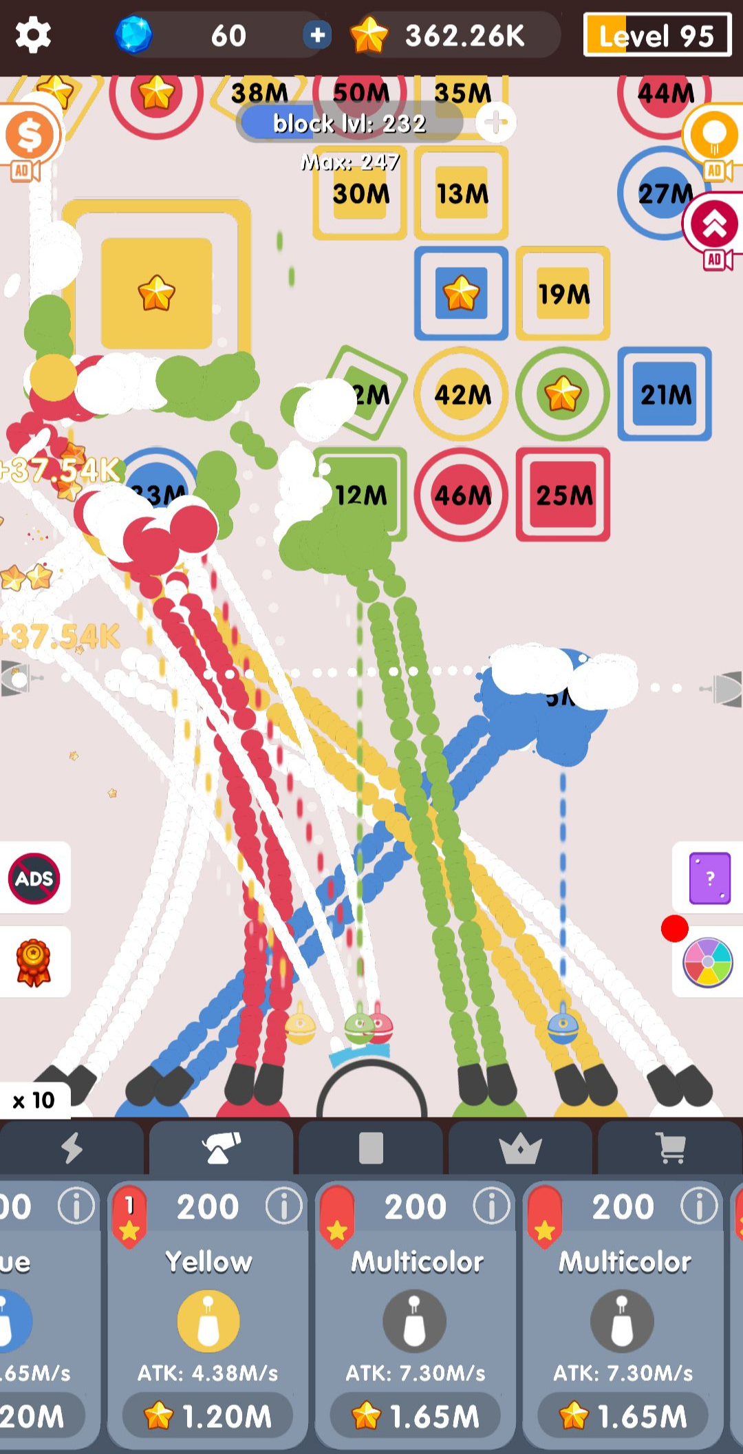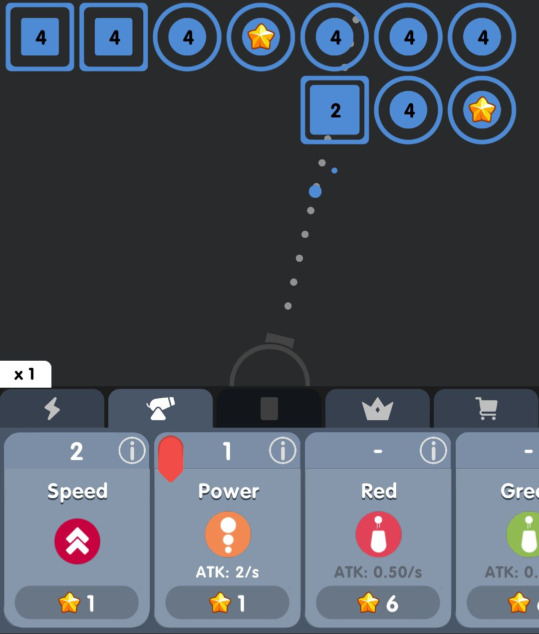 대포를 쏴서 위에서 내려오는 블럭을 깨부수는 방치형 게임입니다.
