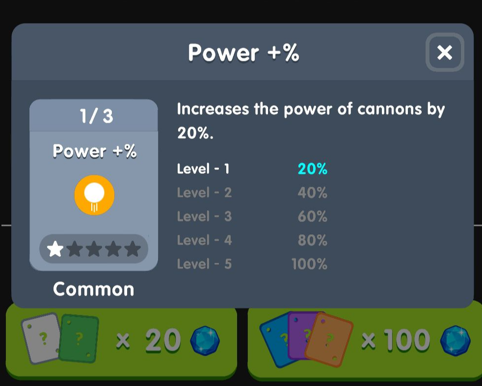 그리고 카드 시스템이 존재하는데요. 카드를 통해서 대포의 각종 능력들을 끌어올릴 수 있습니다.