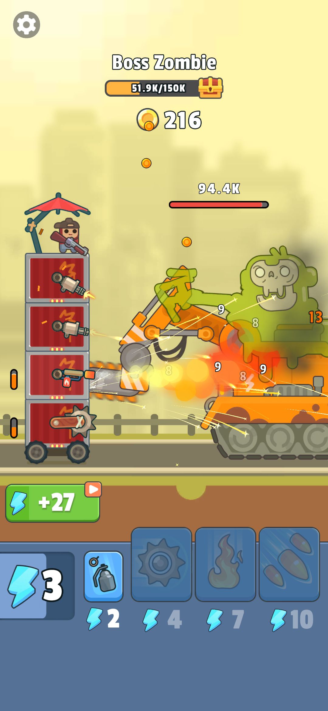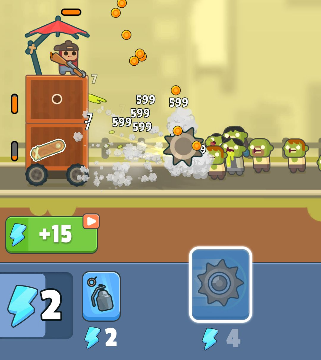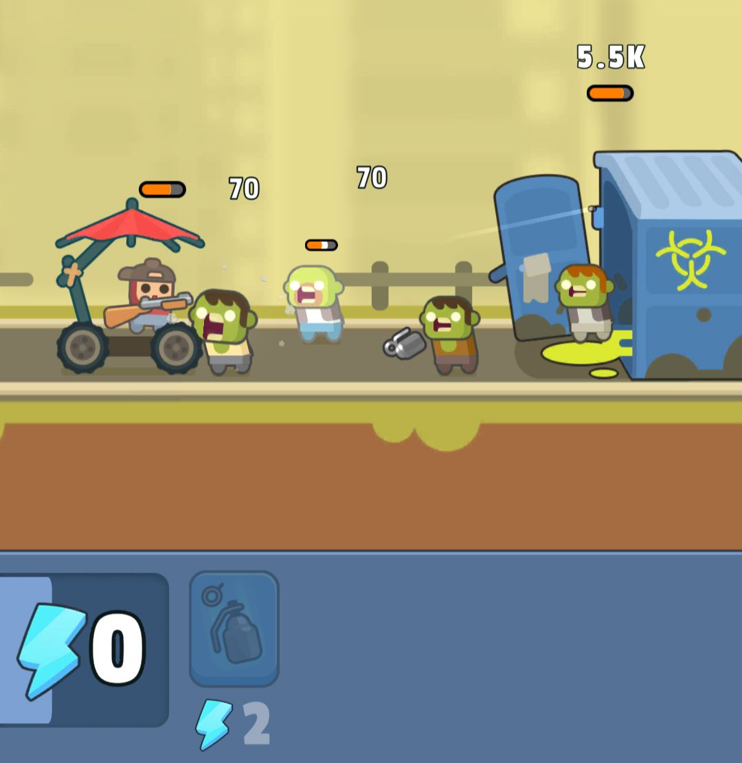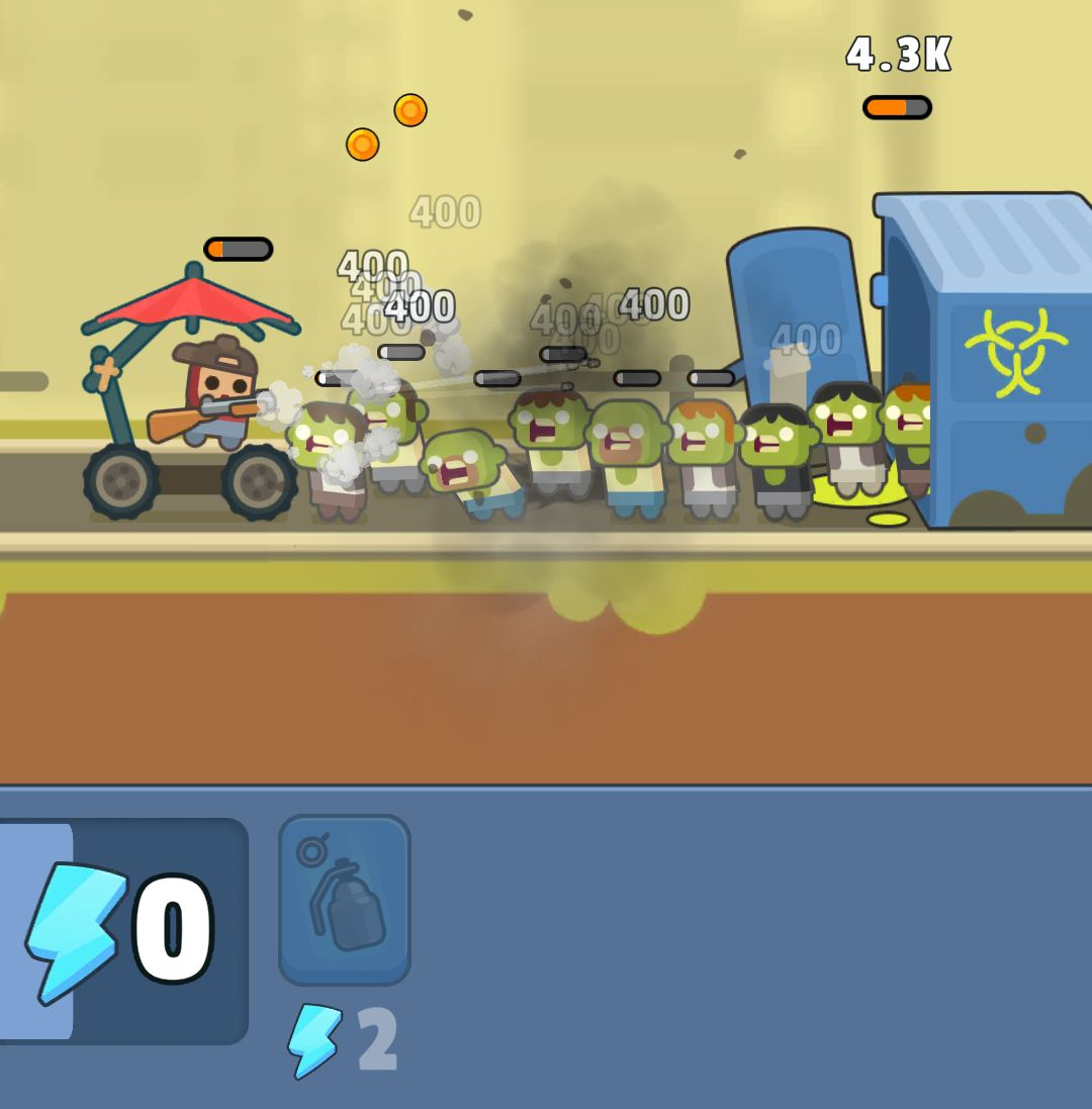 게임을 시작하게 되면 타워가 앞으로 나아가면서 좀비들을 만나게 됩니다. 캐릭터는 샷건을 쏘면서 좀비들을 하나씩 잡게 되는데요.