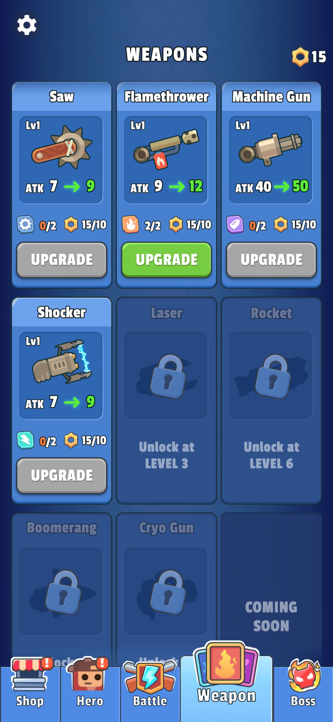 그리고 보스를 잡으면 무기를 강화할 수 있는데요. 보스마다 주는 재화가 또 달라서 무기를 마음대로 강화가 되는 느낌은 아니더라고요.