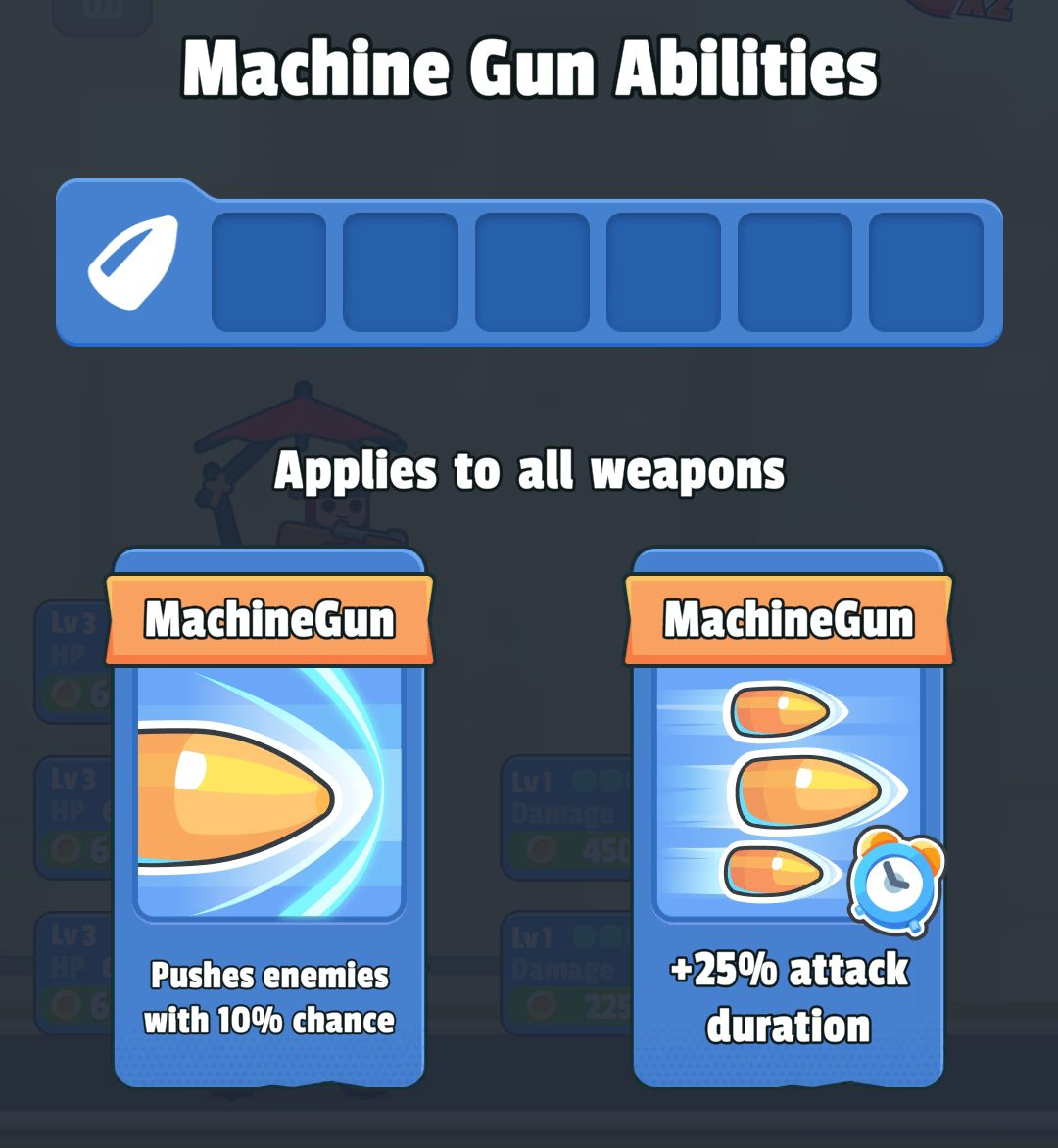무기도 업그레이드를 할 수 있는데요. 레벨을 올리면 무기의 특성을 고를 수 있습니다.