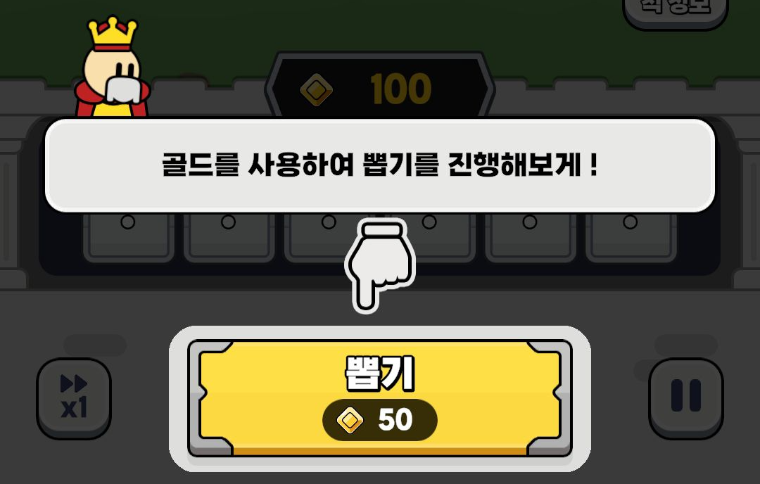 게임을 시작하게 되면 어느정도의 돈이 주어지고, 골드를 사용해서 뽑기를 진행하라고 합니다.