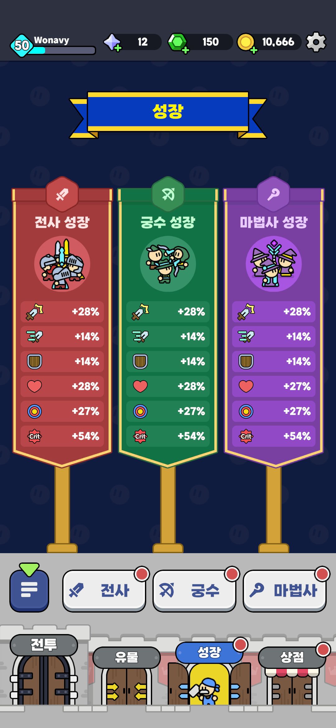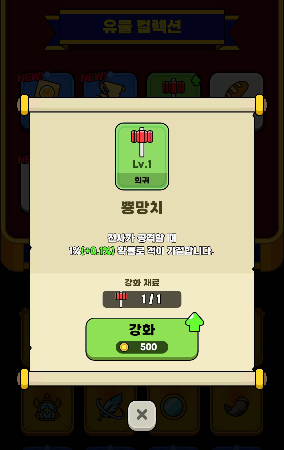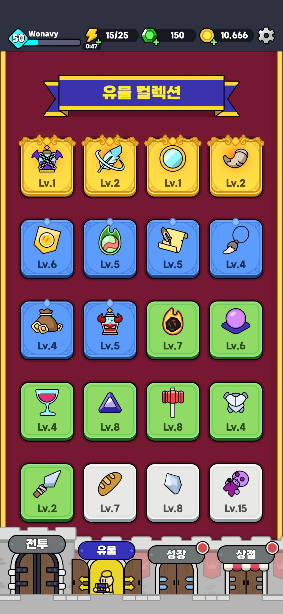 - 성장, 유물 등 간단한 성장 방식