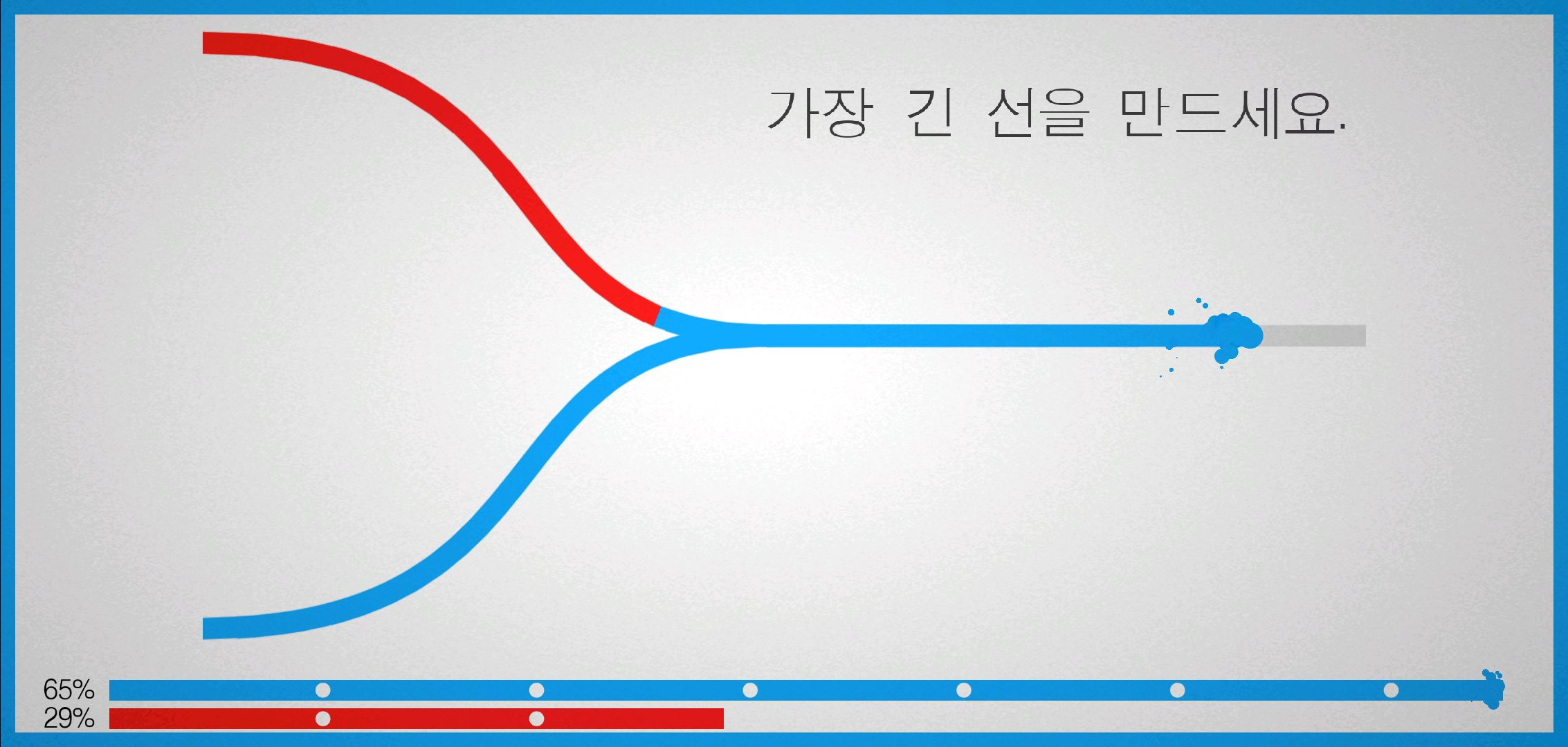 기본적인 목표는 가장 긴 선을 만드는 곳이고, 라인에 터치를 하면 점이 만들어집니다. 그리고 그 점을 기준으로 선이 퍼져나가는 방식으로 진행됩니다.